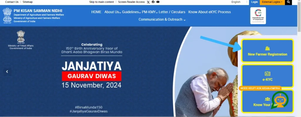 यहां ‘New Farmer Registration’ विकल्प पर क्लिक करें।