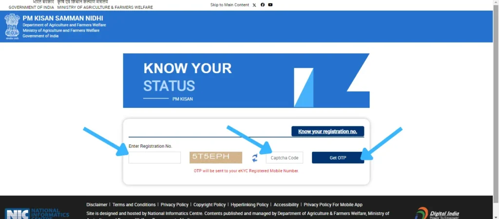 आपको ‘Status of Self Registered/CSC Farmer’ या ‘Beneficiary Status’ का विकल्प दिखाई देगा।